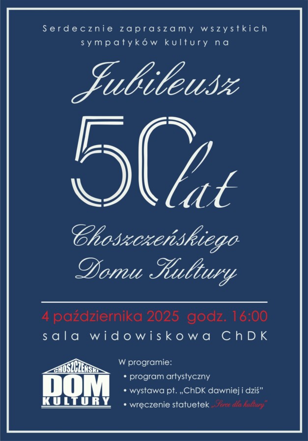Jubileusz 50 – lecia Choszczeńskiego Domu Kultury 04.10.2025 godz. 16:00